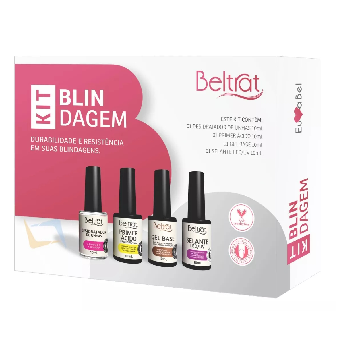 O Kit Blindagem é ideal para fazer o procedimento de blindagem das unhas, esmaltação em gel e preparação para alongamento de unhas artificiais. Promovendo resistência, alta durabilidade, acabamento perfeito e alto brilho.